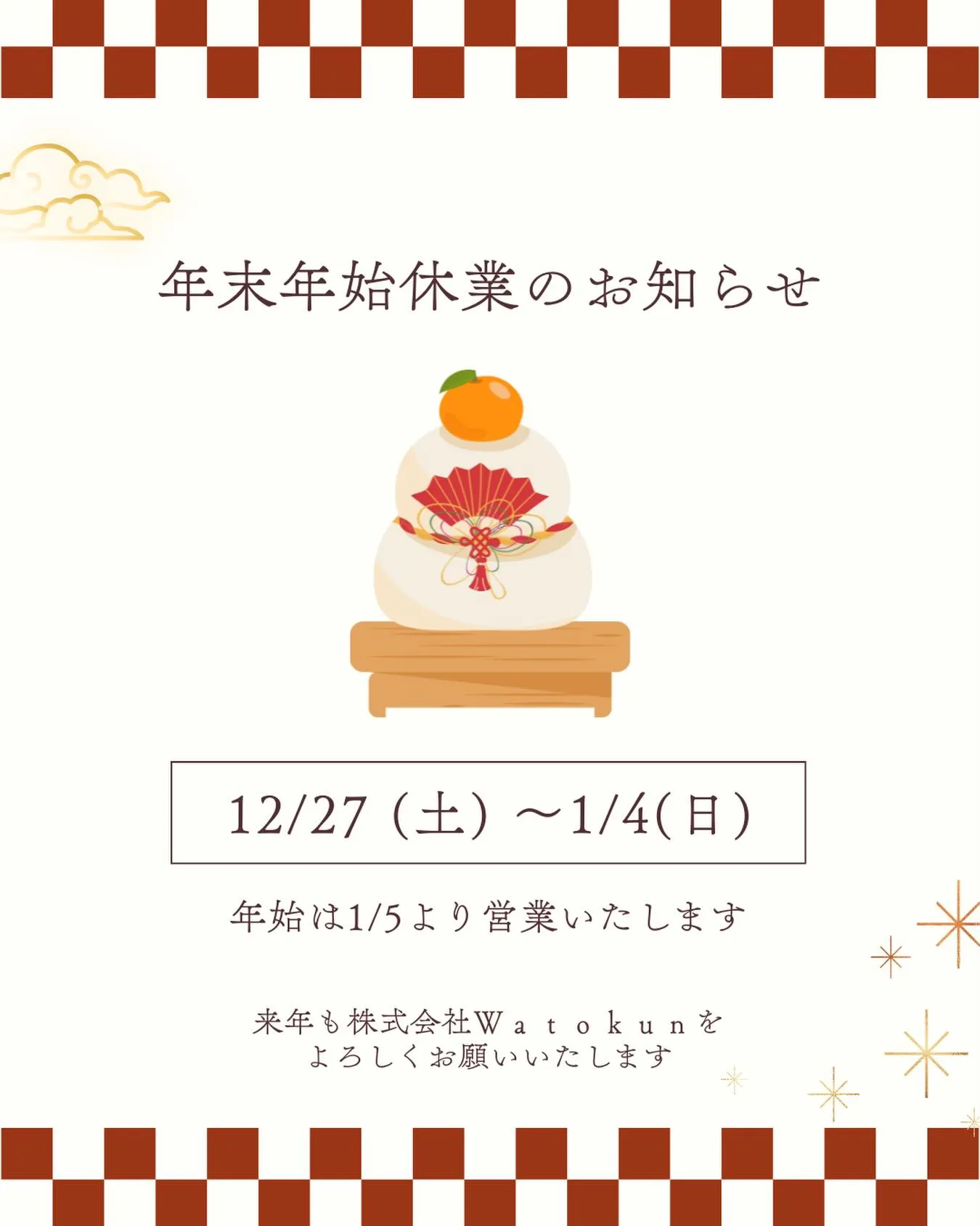 年末年始の休業期間についてお知らせいたします🎍